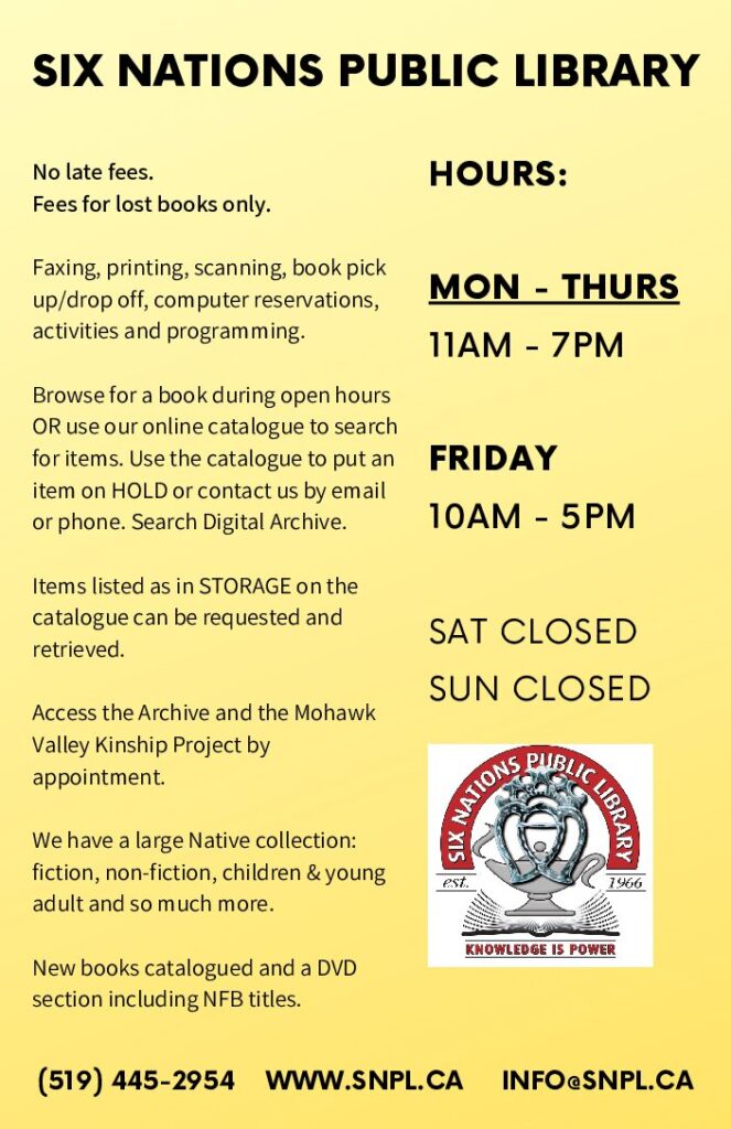 6NPL subscribes to several E-Resources thanks to both the Six Nations Community Development Trust and an Ontario Ministry of Tourism and Culture’s provincial investment in public libraries of $15 Million. Read More